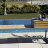manfifactured of steel tubes 5*3 cm and of1.6mm in thickness and of peach pine wooden stripes of 7cm in width and of 2.5 cm in thickness